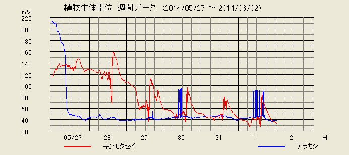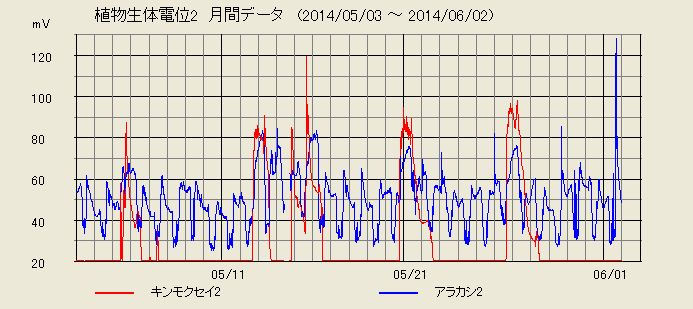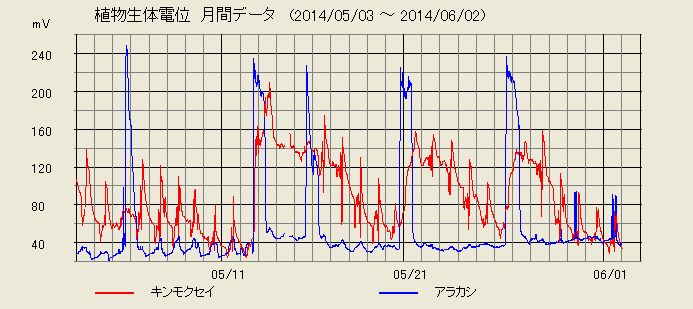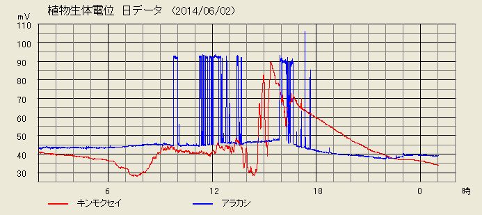 京都観測点植物生体電位・地電位観測最新データ