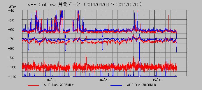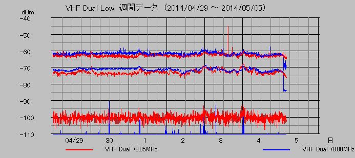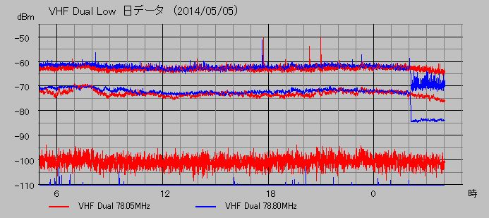 VHF帯低域電磁波観測 (78.05, 78.80MHz)