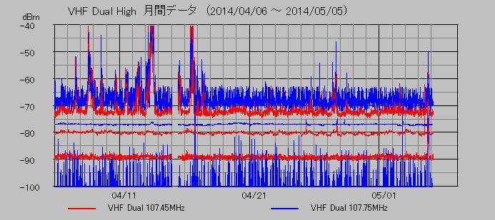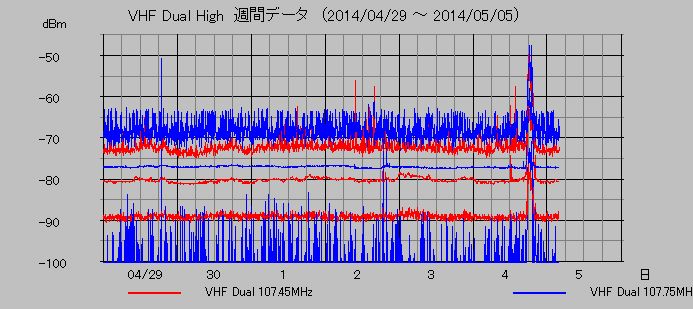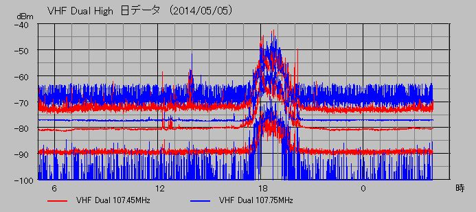 VHF帯高域電磁波観測 (107.45, 107.75MHz)