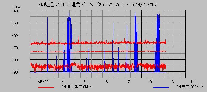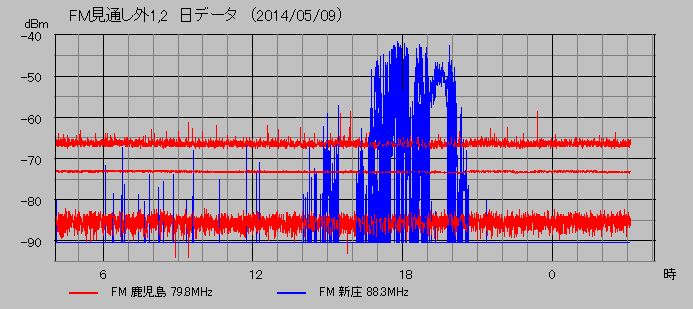 VHF帯見通し外放送局観測 (鹿児島 79.8MHz, 新庄 88.3MHz)